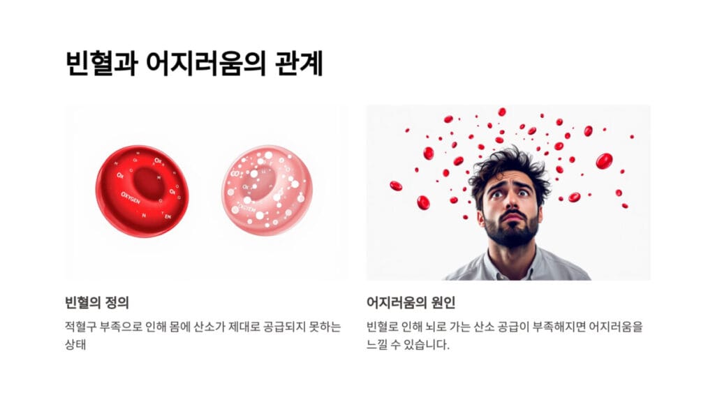 빈혈로 인한 어지러움은 흔한 증상으로, 체내 산소 부족이 원인입니다.